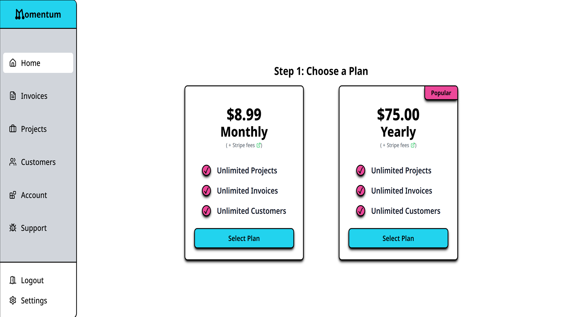 Enjoy unlimited customers, unlimited invoices, and complete peace of mind with Stripe’s secure payment processing. The only additional cost you’ll incur is Stripe’s standard invoicing fees. Momentum is built to empower your business with clear, upfront pricing—no hidden fees, no surprises.